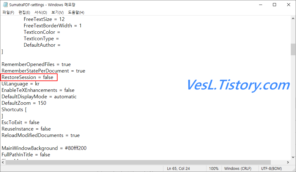 RestoreSession을 검색해서 false로 바꾸고 저장한다.